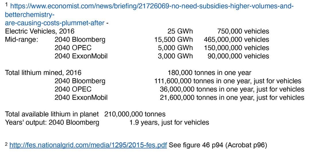And that assumes that all vehicles will be battery powered, no hydrogen-powered fuel cells: the global shortage of lithium means that no more than one-third of vehicles will be battery powered, and these will be of smaller size and shorter range than the fuel cell vehicles, so the effective capacity is 0.5% of grid demand. No magic bullet.