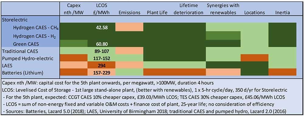 The grossly inefficient, costly and inadequate purchasing of such services from batteries is a well-predicted direct consequence of salami-slicing services. Yet even with all these advantages, the Levelised Cost of Storage of Storelectric’s CAES is lower than that of any other electricity storage technology of similar scale and duration: