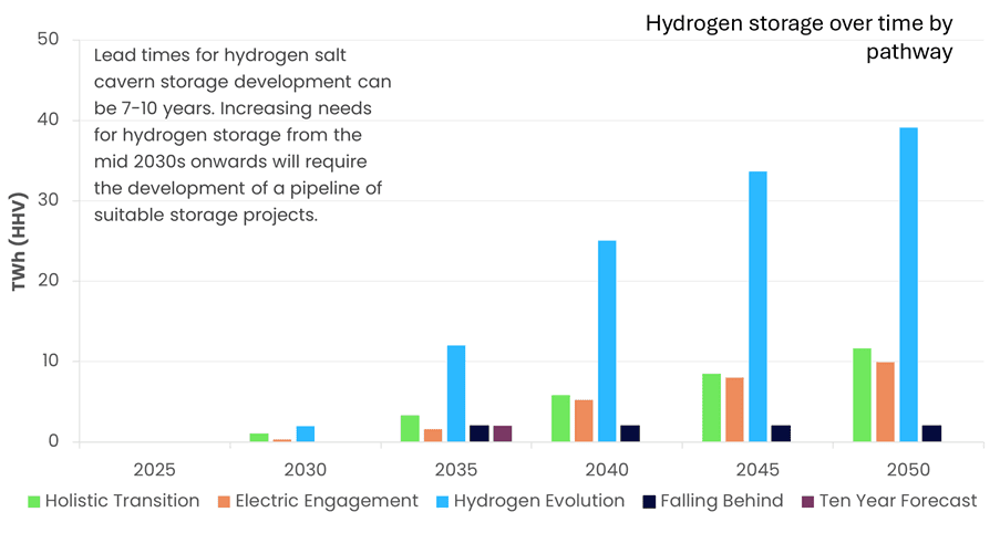Furthermore, Storelectric’s hydrogen storage solutions are critical to realising the Hydrogen Evolution pathway and underpinning hydrogen dispatchable power in the others. Our patented technology enables massive-scale hydrogen storage within salt caverns, an infrastructure requirement highlighted repeatedly in the FES report.