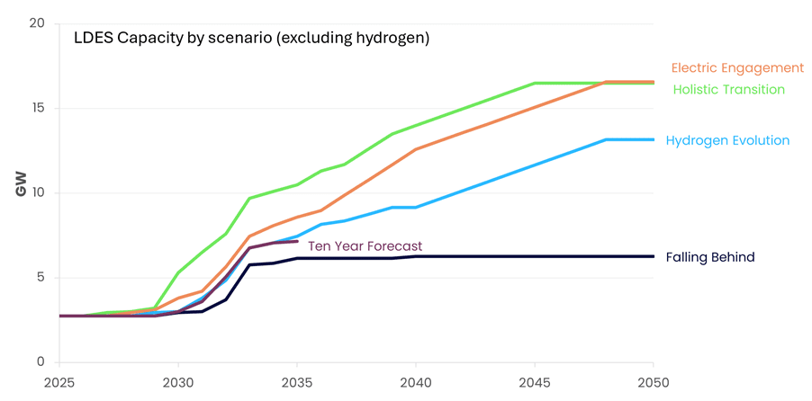 Across all three net zero-aligned pathways, the FES 2025 emphasises the absolute need for flexibility in enabling decarbonisation. The system must be capable of managing high volumes of variable renewable generation. For that, energy storage is critical.