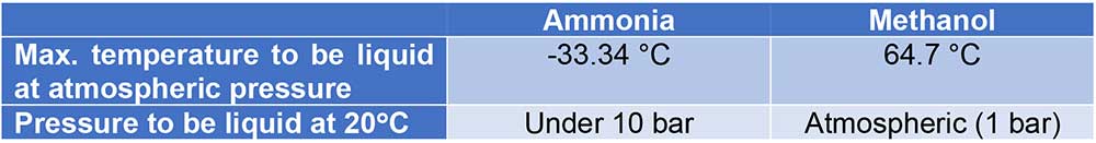 Ammonia and methanol each carry three hydrogen atoms per molecule. This makes them energy-dense – i.e. lots of hydrogen per unit volume – and both are liquid at reasonable temperatures.